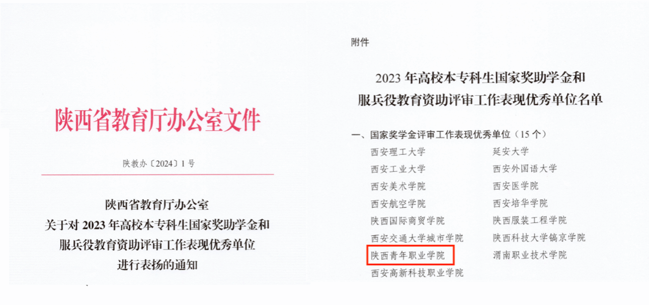 在《陕西省教育厅学生资助事务中心感谢信》中,省教育厅对学院大力支持陕西省学生资助工作,选派业务骨干参加全省高校2023年度国家奖学金评审、国家励志奖学金和国家助学金评审和服兵役高校学生国家教育资助材料审核工作表示感谢,对我院学生资助管理中心主任高伟同志认真负责、严谨细致、加班加点、按时保质完成工作任务提出表扬。