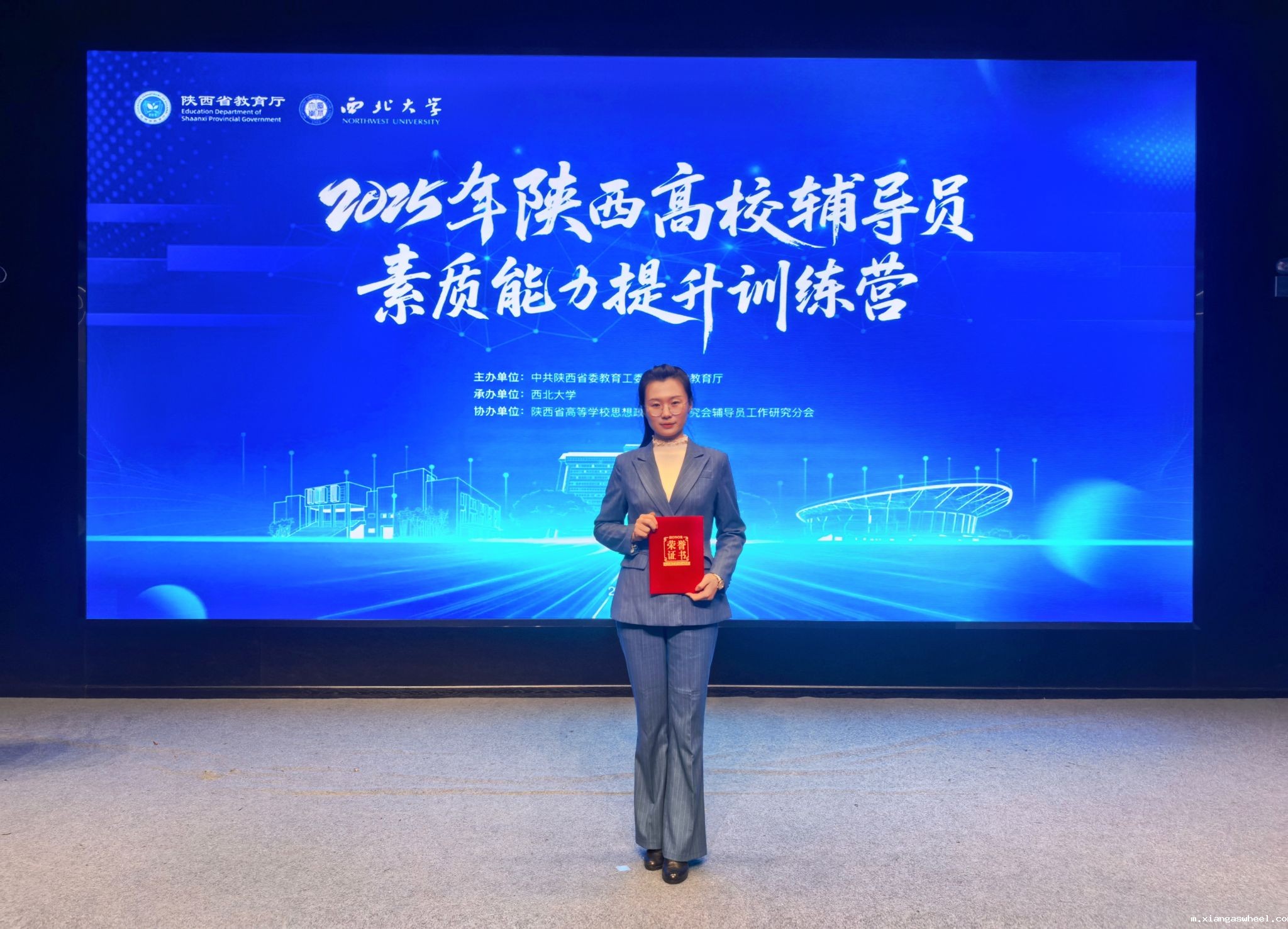 11月5日至7日,由省教育厅主办的2025年陕西省高校辅导员素质能力提升训练营在西北大学长安校区举办。我校交通运营服务系辅导员康馨月在全省135名参赛辅导员中脱颖而出荣获“最佳风采奖”。